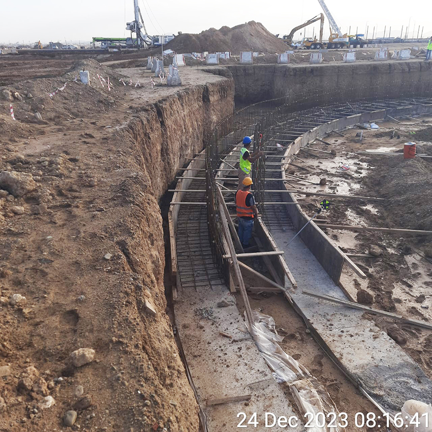 الحوائط الساندة هي حوائط خرسانية مسلحة عميقة تُبنى في الأرض لتوفير دعم هيكلي دائم وتحكم في المياه الجوفية. تُستخدم عادة في الدورات السفلية العميقة، والأنفاق السفلية، وأعمال الأنفاق في البيئات الحضرية. تُبنى باستخدام تقنيات خنادق الطين، وتوفر الحوائط الساندة قوة عالية، وأقل اضطراب للتربة، ومقاومة ممتازة للماء. دقتها ومتانتها تجعلها مثالية لظروف التربة والمياه الجوفية الصعبة.