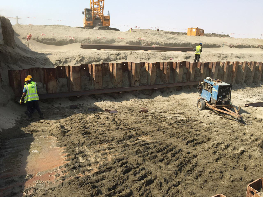 هي ألواح فولاذية ذات حواف متصلة لاحتواء جدران الحفريات على أعماق تصميم معينة يمكن تركيبها باستخدام مطرقة اهتزازية. توفر الستائر المعدنية دعمًا دائمًا/مؤقتًا لقوى التربة الجانبية مع تحكم في تدفق المياه الجوفية. يمكن إضافة ربط خلفي أو أي نظام دعم إضافي لتوفير دعم إضافي إذا تطلب التصميم ذلك. وقد تم استخدامها في العديد من التطبيقات مثل الجدران البحرية، والقواعد، ومحطات الضخ. يمكن لشركة اساسات جدة تنفيذ تركيبات الستائر المعدنية من أي نوع وفي أي بيئة بفضل أسطولها من المعدات عالية الإعتمادية. بفضل قدرات التصميم الداخلية لدينا وسنوات الخبرة، يمكننا تصميم حل ميسور التكلفة لكل مشروع وتجنب صعوبات التصميم والتركيب الشائعة.